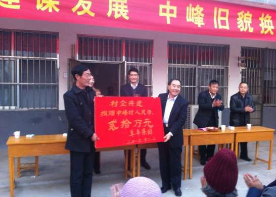 村企共建活动由莒南县委组织部发起,作为有社会责任感和重要影响力的企业,集团积极响应号召,先后与涝坡镇中峰村,十字路镇李家扁山村等结成共建对子,并给予了大力资金支持和帮助。对本次共建对子中峰村,董事长曾在2010年11月一次性无偿捐助30万元,为村里硬化,绿化,亮化了“七纵一横” 8条街道,路面硬化面积达6500余平米。为进一步改善村里的生产,生活条件,董事长个人决定再次出资20万元,继续实施道路建设工程,推进新农村建设。